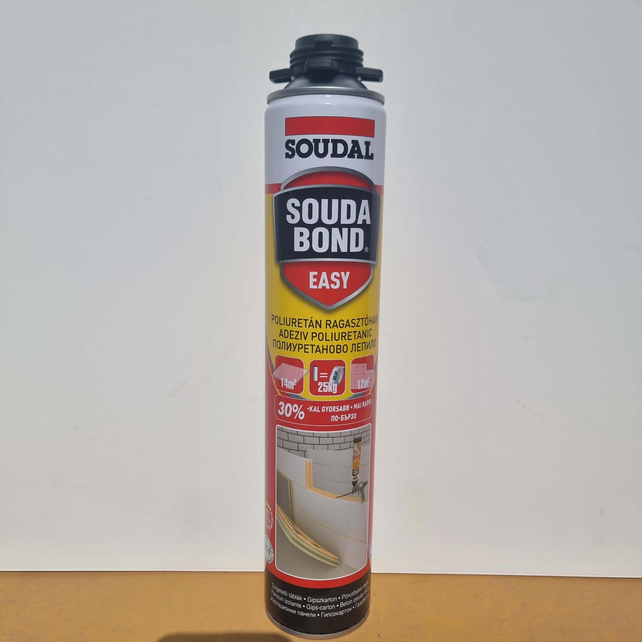 Az innovatív Soudabond Easy Pisztolyos ragasztóhab remek megoldás az EPS (expandált polisztirol) és XPS (extrudált polisztirol) hőszigetelő táblák ragasztására. A Soudabond EASY kiváló teljesítményű poliuretán ragasztóhab. Gyorsan, könnyen használható, használatra kész, helyettesíti a hagyományos poralapú ragasztókat. Ez a készítmény kombinálja az erős tapadást a réskitöltő sajátságokkal, így alkalmas egyenetlen felületek ragasztására. Szinte minden építőanyag, például szigetelőlapok és gipszkarton ragasztására, valamint belső falak készítésére használható könnyű falazóelemekből.